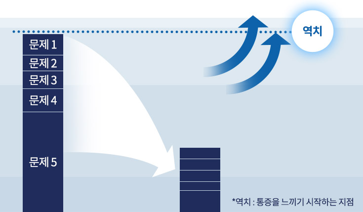 회복력과 면역력을 올려서 역치를 올리게 되면, 똑같이 염증이 있고 신경 압박이 있더라도
